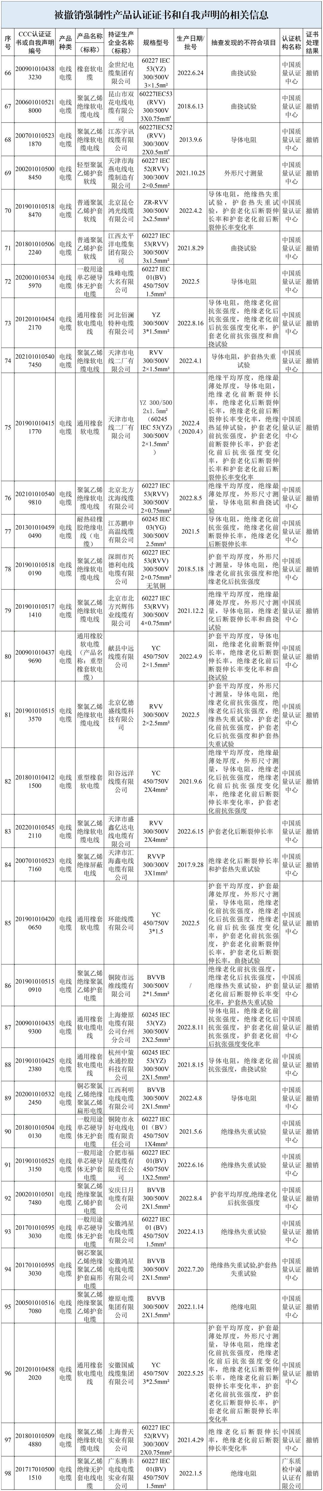 2023年5月4日,市場監(jiān)管總局發(fā)布2023年度第2期認證有效性抽查結(jié)果,根據(jù)相關(guān)抽查信息,認證機構(gòu)對不符合認證要求的獲證企業(yè)已作出撤銷1057張強制性產(chǎn)品認證證書的處理,其中,共有31家線纜企業(yè)被撤銷強制性產(chǎn)品認證證書。